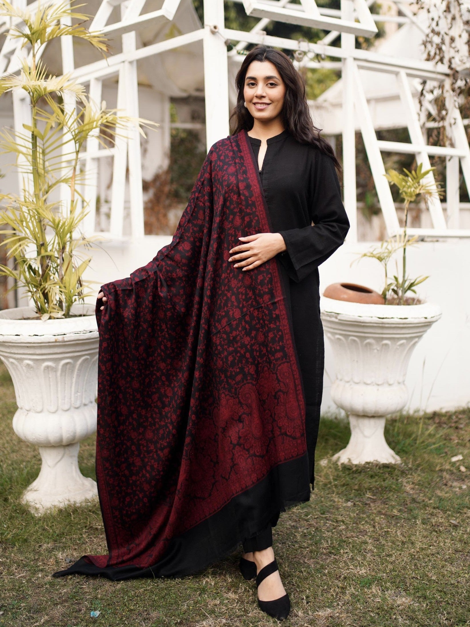 Kaani Style Pashmina Wool Shawl- Blackish Maroon