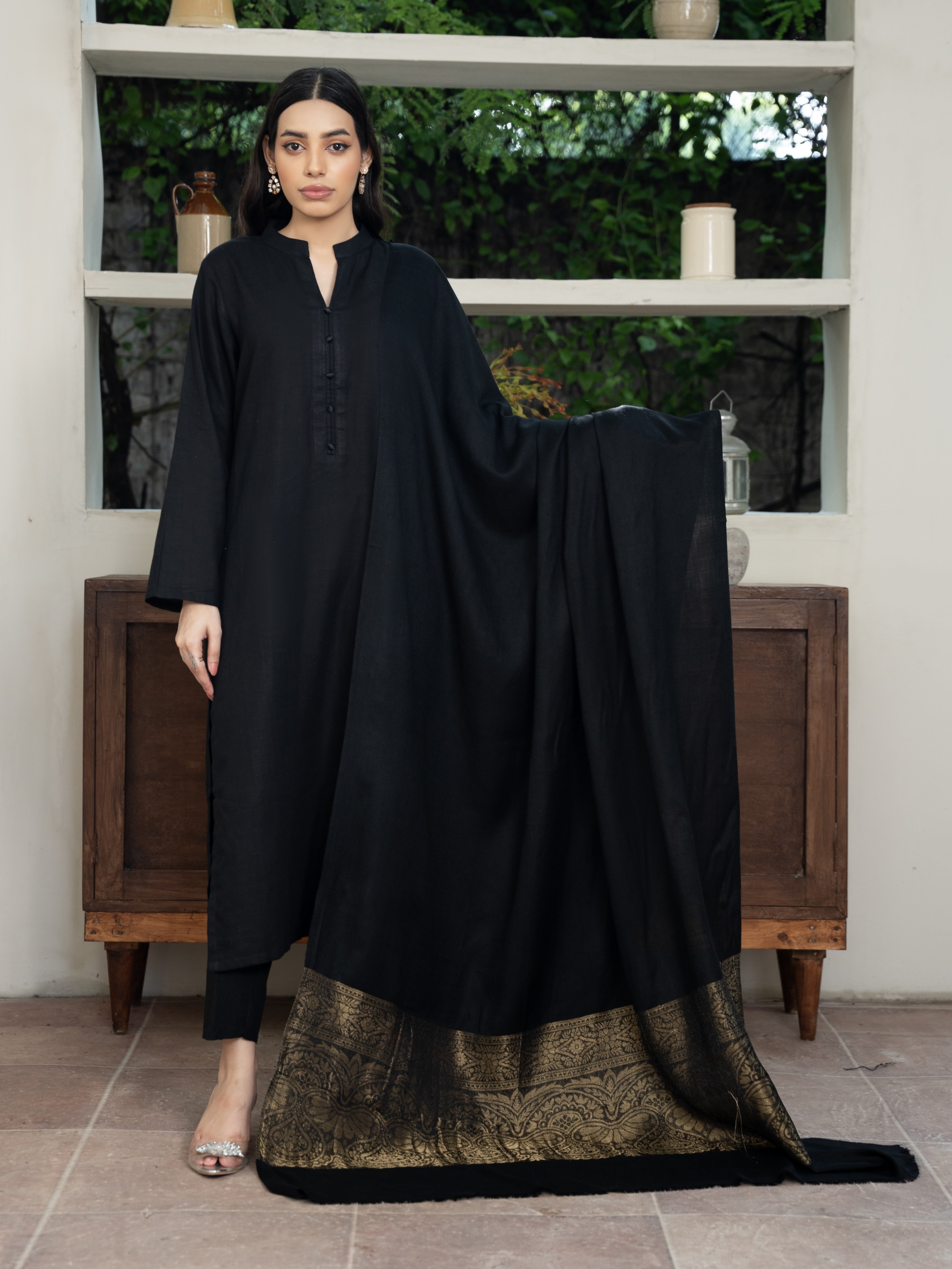 1)      This Black Pashmina Wool shawl embossed with Gold Zari work is an ideal accessory to carry this winter.